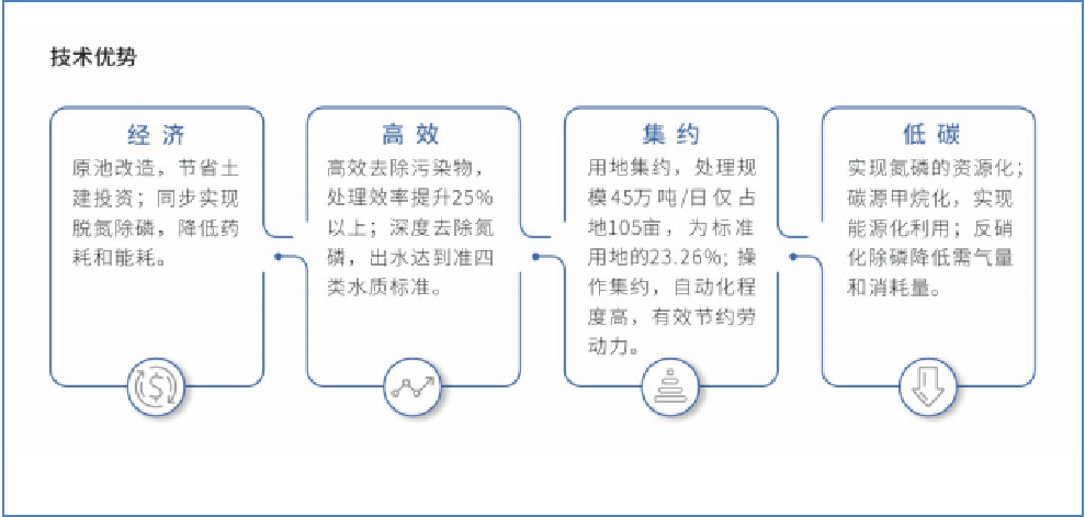 生活污水原位提标扩容分配式垂向环流深度脱氮除磷技术(“简称XDP技术”)授权专利24项,先后被评选为湖南省环境保护实用技术,湖南省环境保护科学技术奖一等奖,该技术经科技成果评价认定为“国际领先”,技术优势显著。该项技术运用流体力学原理和反硝化除磷理论,形成了 “分配式垂向环流厌氧/缺氧—卷式填料挂膜好氧—吹脱消氧—沉淀”反硝化除磷新工艺,适应了我国市政污水低碳氮比水质特征,实现了高效深度脱氮除磷,有效扩大了污水处理规模和提高了出水水质。